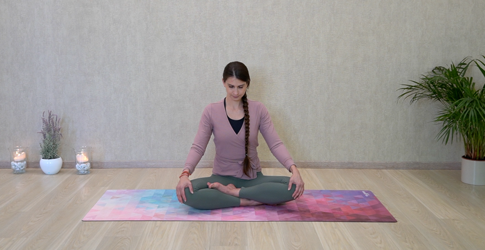 - Sadnite si do jedného z jogových sedov a vyrovnajte sa. Uvoľnite sa.